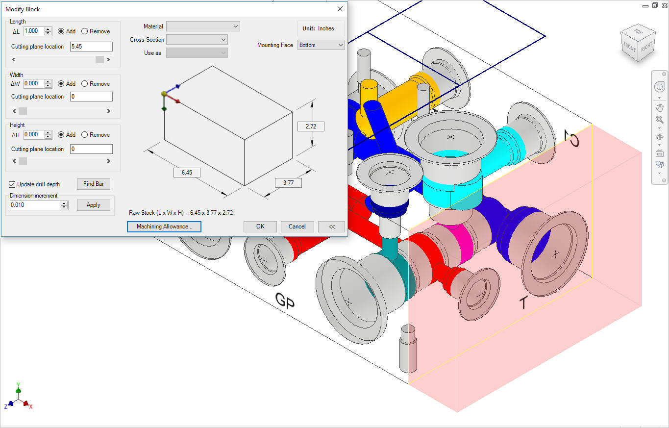 The Create (Block) command also enables you to modify the manifold block size during the manifold design process based on the required change in the manifold size.