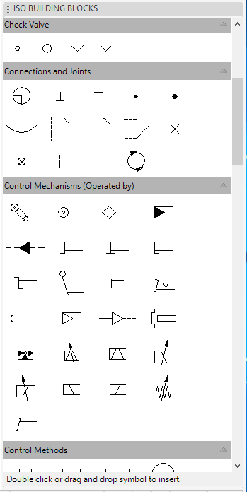 The ISO basic building block elements are structured in logical folders for easy access. This is a dock able window.