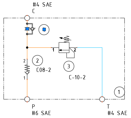 The Orifice disc is automatically inserted on Port #1 of the selected cartridge symbol or external port on the drawing.