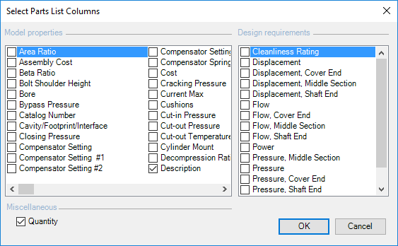 The Select Parts List Columns dialog box displays.