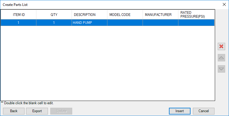 11. Select the Browse.. button to export the Parts list in the Excel template format. Select the starting rows and columns of the given template.