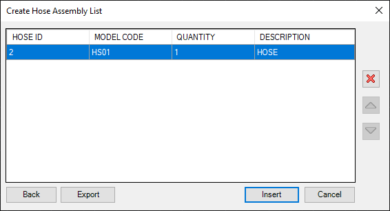 The selected properties are displayed in a tabular form when the Hose list is created in the drawing.