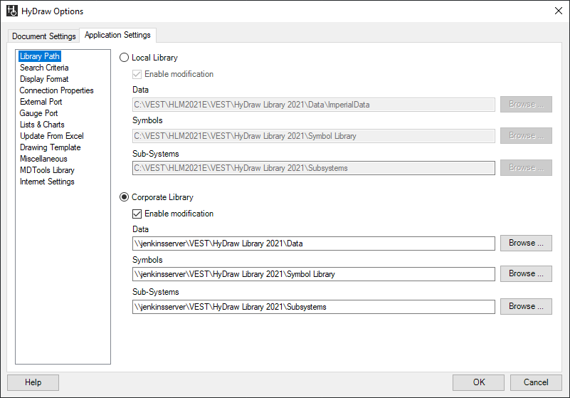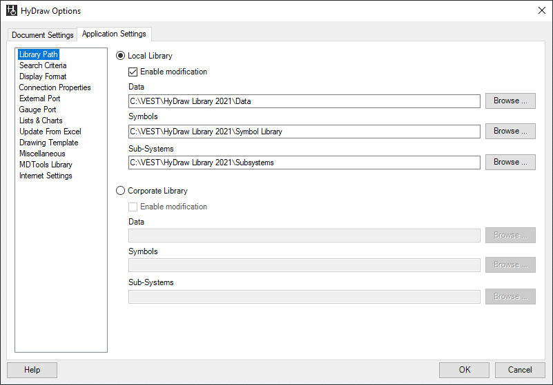 1. Click the Application Settings > Library Path tab of HyDraw® Options.