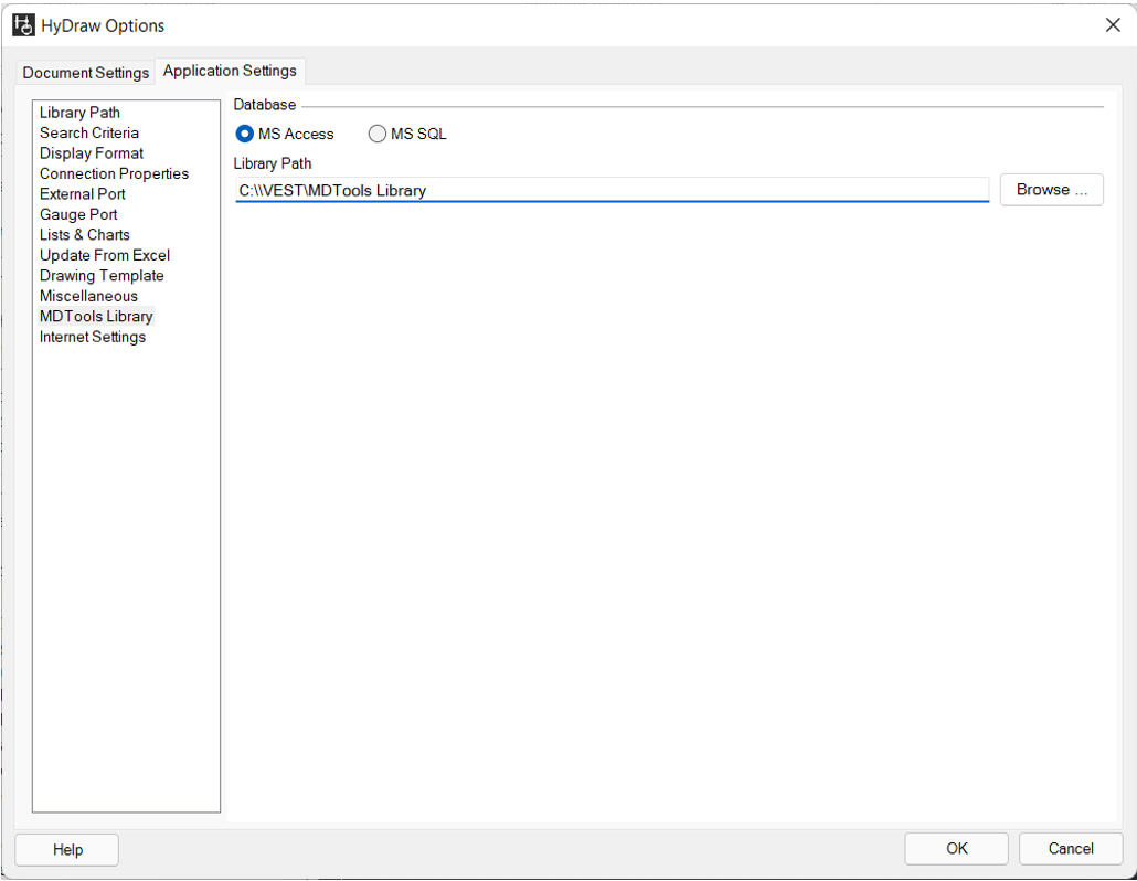1. Click HyDraw Options > MDTools Library on the HyDraw CAD ribbon menu.