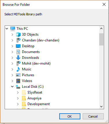 3. Browse and select the folder with MDTools library.