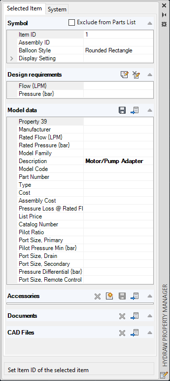 Properties assigned to the selected symbol or sub-system in the drawing is displayed.