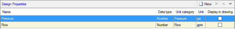 Create a new design property or delete one by selecting the required icon on the caption bar.