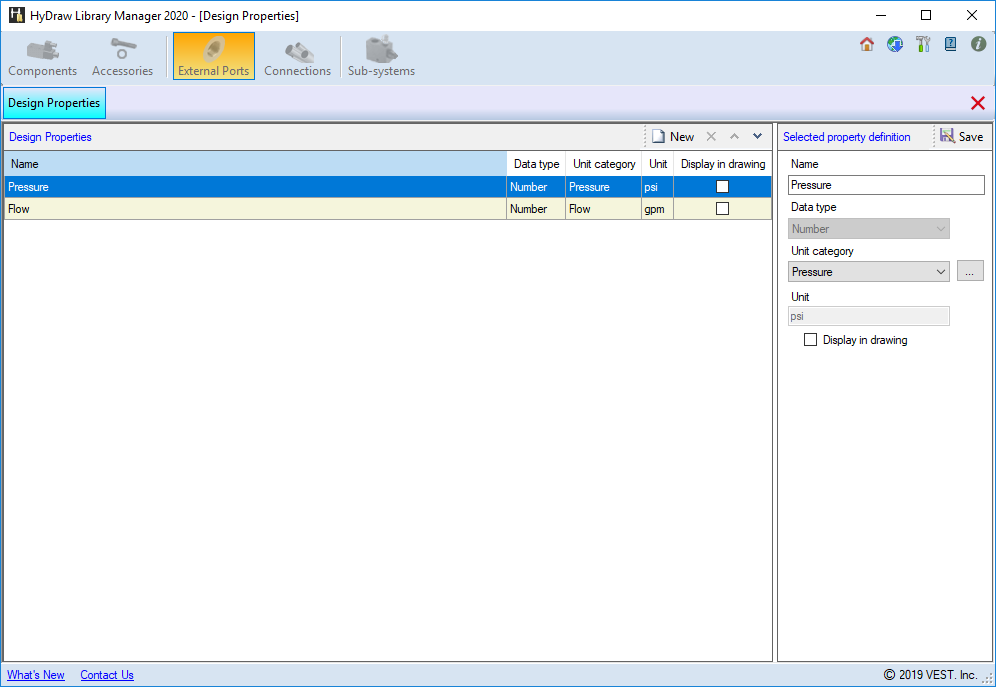 Manage the design properties of the external port.