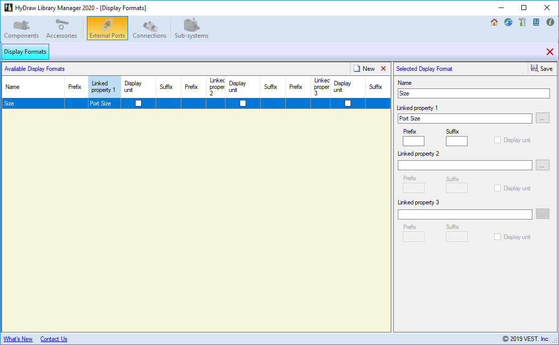 Assign Display formats to external ports and display properties with prefix and/or suffix. Display compound properties using the display format.