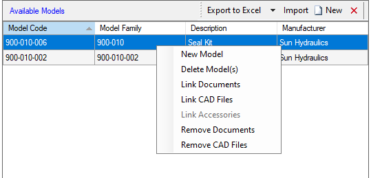 The Available models section displays all the accessories for the selected component type of a manufacturer or all manufacturers.