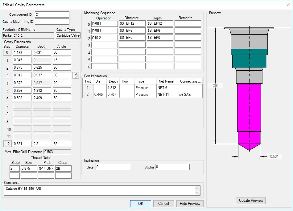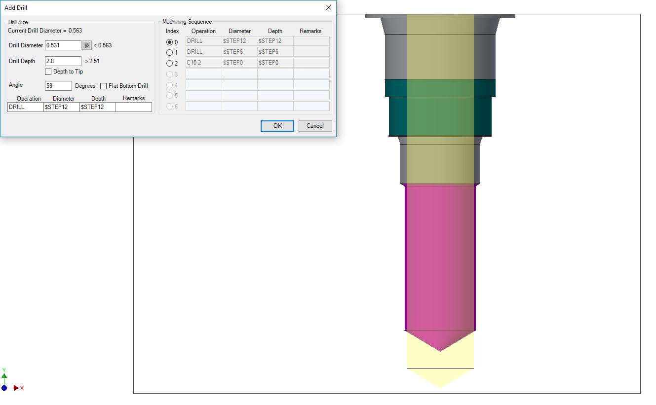 8. Click OK to add the drill to the selected cavity.