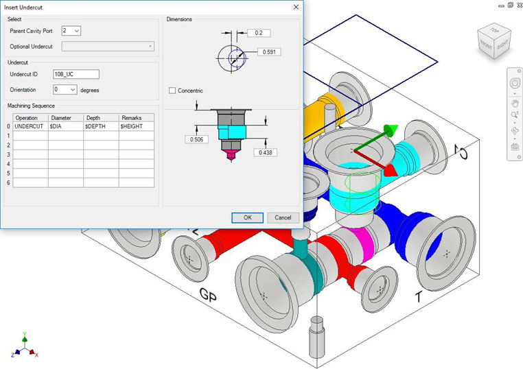 Undercut is a special machining operation that is required in cavities to ensure increased flow requirements through ports of the same size. Undercut increases the port area to handle the increased flow.