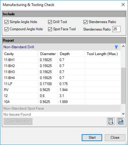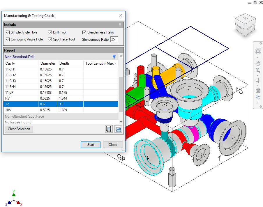 § Double click a row in the report to zoom into the problem area/cavity. Step0 of ports and cartridge valve cavities is considered a Spot Face.