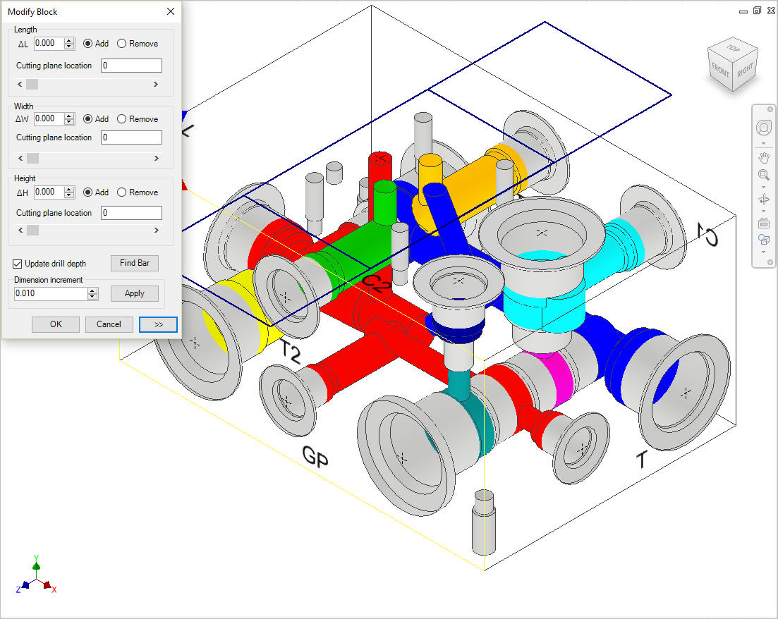 5. Select Update drill depth to update the drill depths of cavities according to the change in block dimensions.