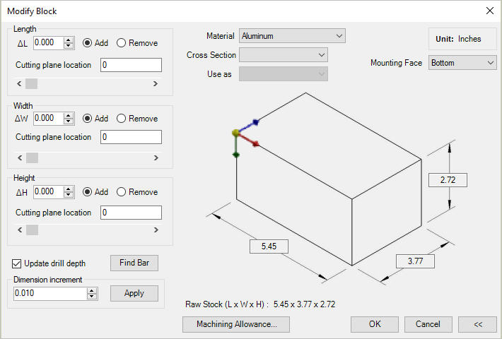 3. To reduce any of the block dimensions, select the Remove option with the value.