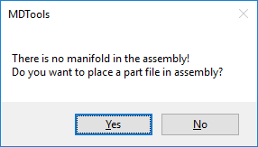 Note: If there is no manifold placed in the assembly, MDTools shows a Message box to check if you want to place a manifold in the assembly.