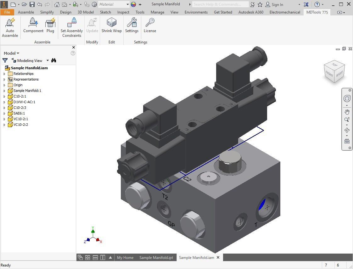 The component Models assigned in HyDraw Schematic are automatically assembled to the manifold.