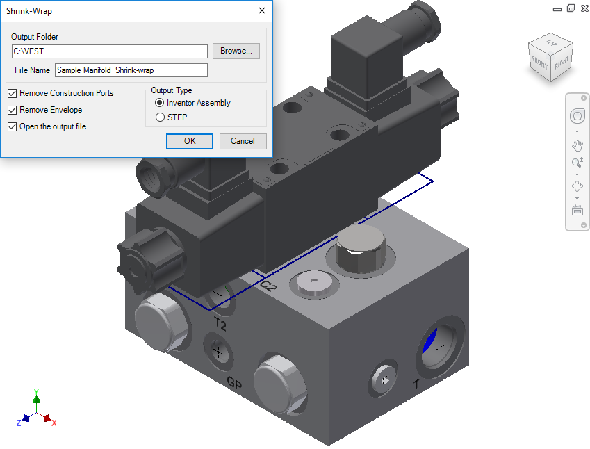 If the Open the output file option is selected, then the output file is automatically opened in Inventor.