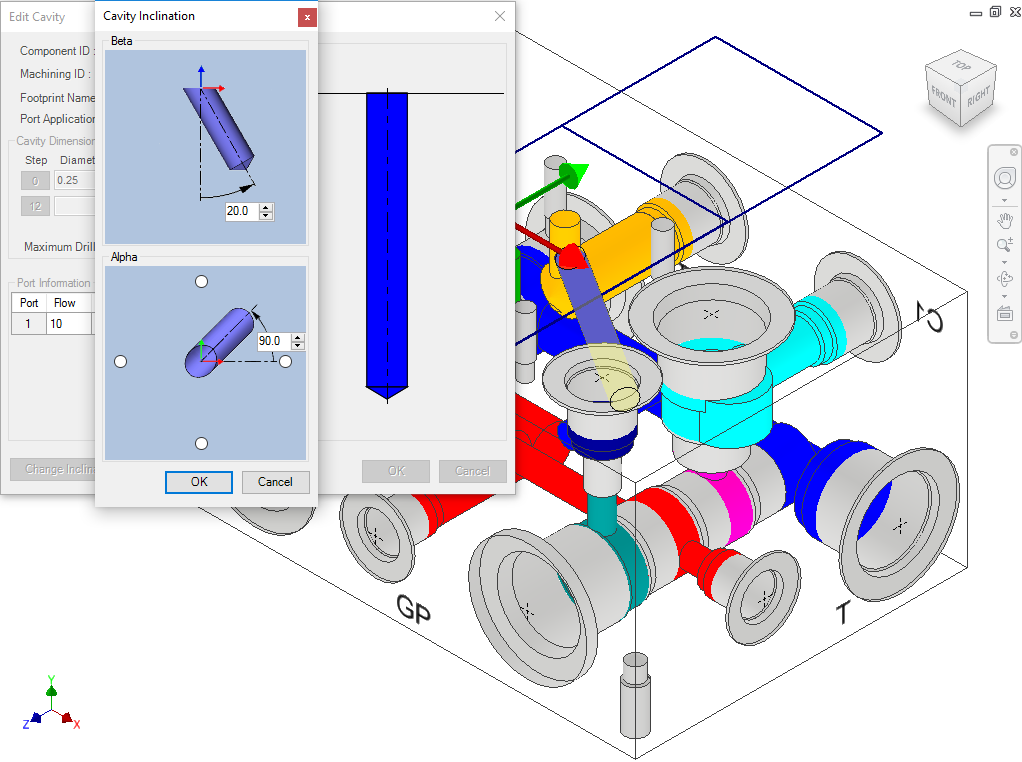 Click Change Cavity Inclination to change the inclination of a cavity.