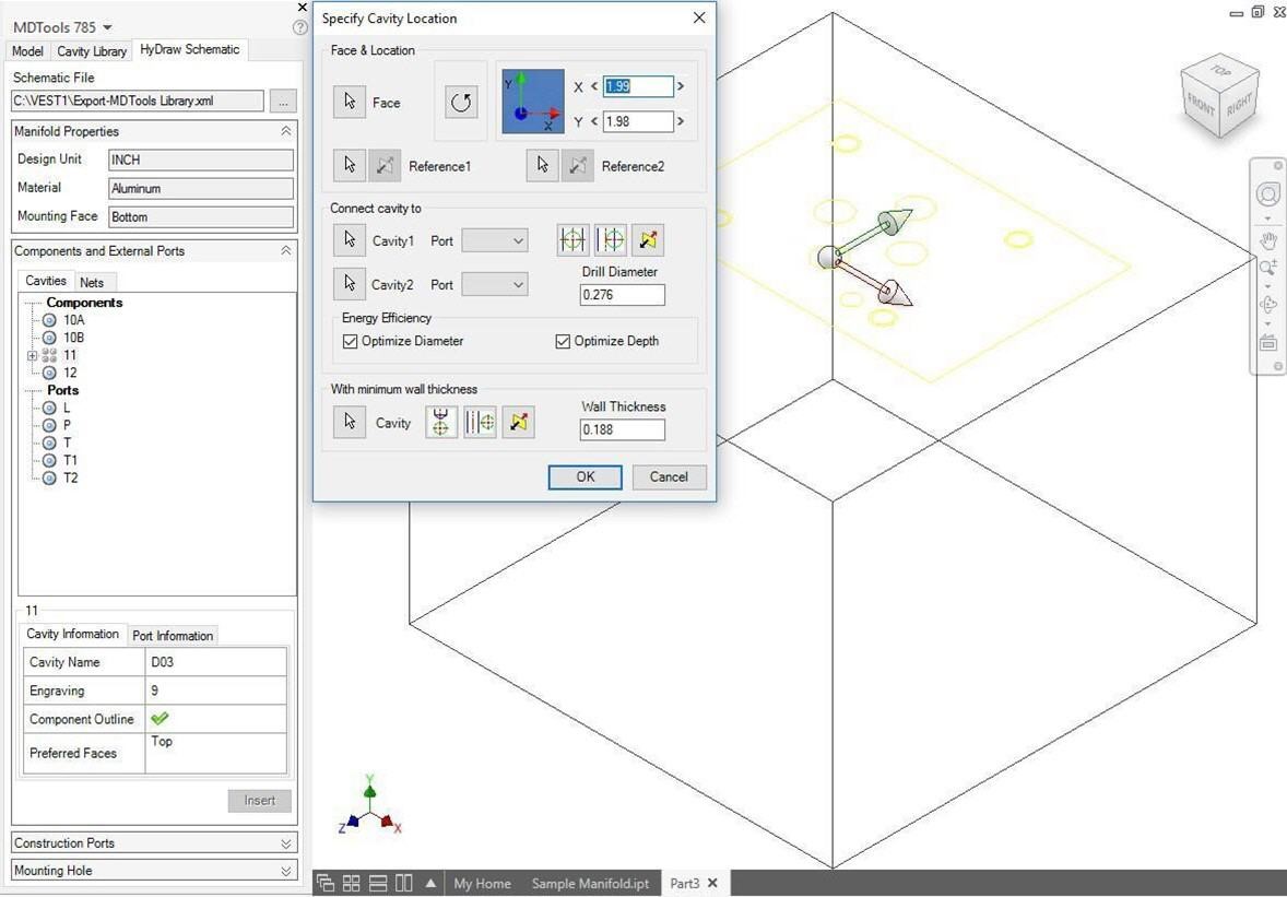 1. MDTools 785 ribbon > Insert panel > Cavity dropdown > From HyDraw