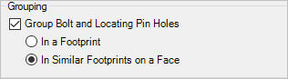 9. Select Group Bolt and Locating Pin Holes to either group the Machining Callouts automatically for a Footprint or similar Footprints on a Face.