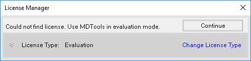 (Or Click Continue to use MDTools in Evaluation