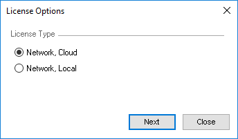 License Options dialog displays.