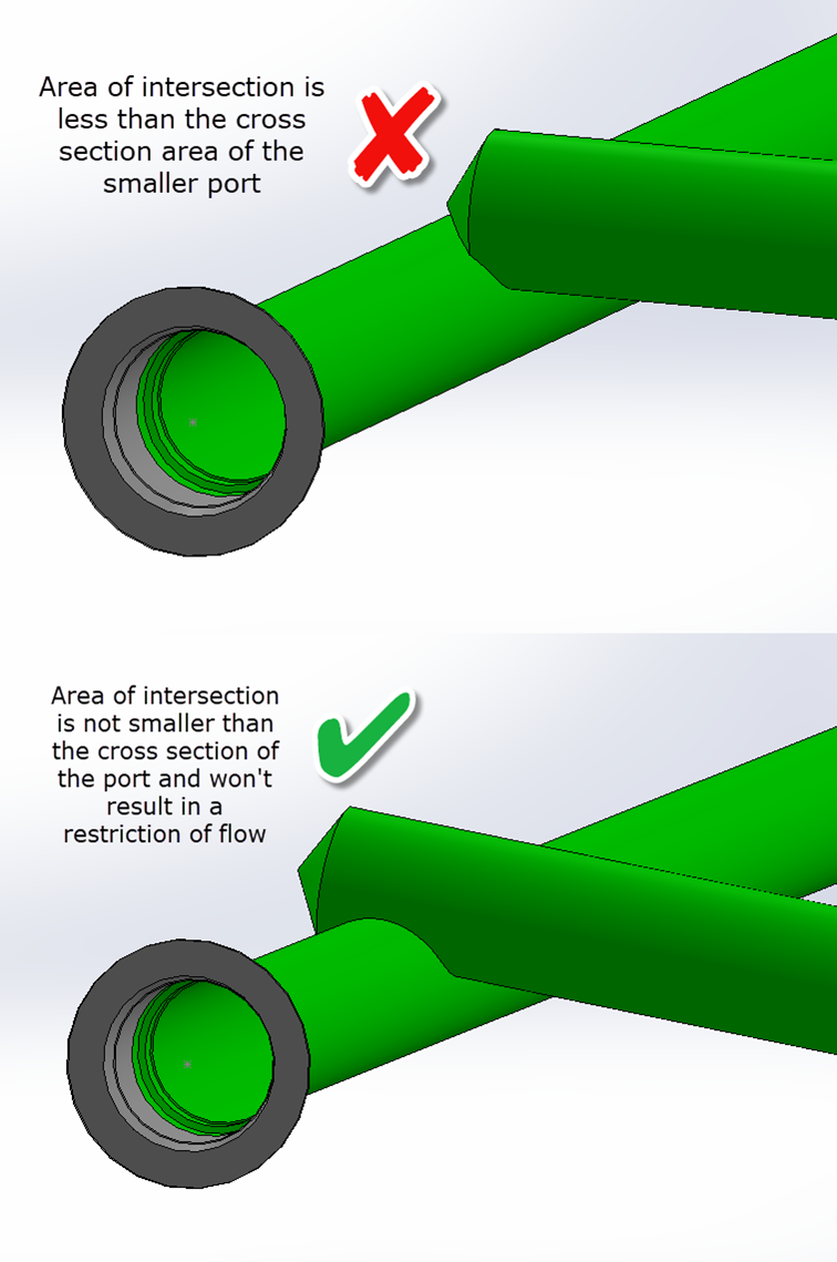 If the area of a connection is less than the area of the cross-section of the smaller diameter hole, then it is listed as a poor connection with the intersection size as a percentage of the size of the smaller drill cross-section.