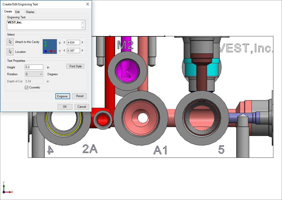 8. Repeat the above steps to create all the Engraving text on the manifold.