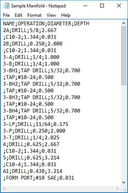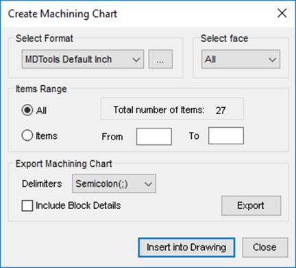 3. Select Include Block Details to include the manifold block details in the exported machining chart text file.