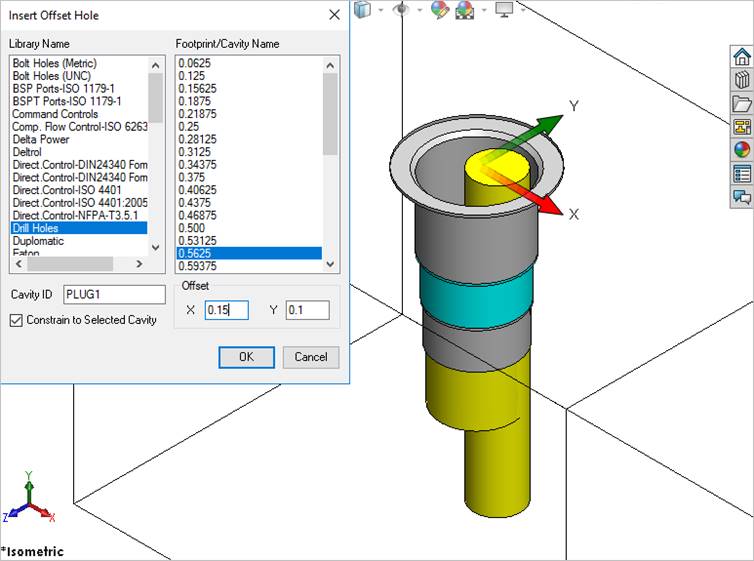 · To unconstrain the offset hole with the parent cavity, deselect the Constrained to Selected Cavity option.