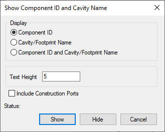 The Show Component ID and Cavity Name dialog box displays.