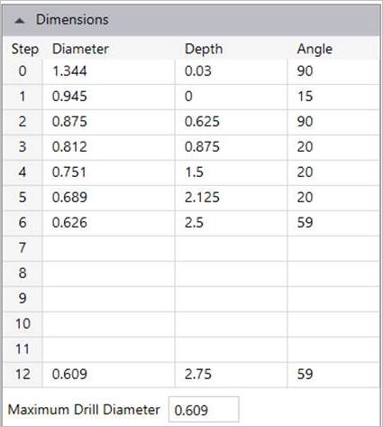 Enter the maximum drill diameter allowed for the cavity.