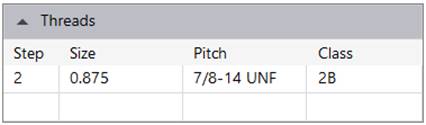 Enter the thread details for the cavity.