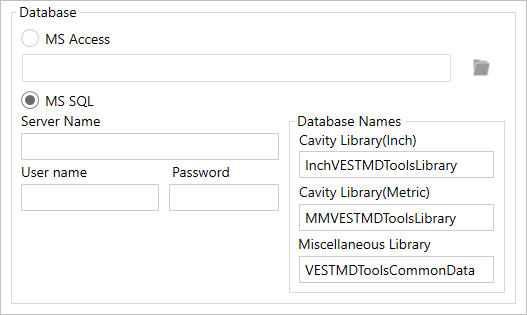 - Enter SQL Server Name,User Name, Password, and DataBase Names, Cavity Library(Inch),Cavity Library(Metric) and Miscellaneous Library