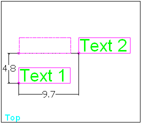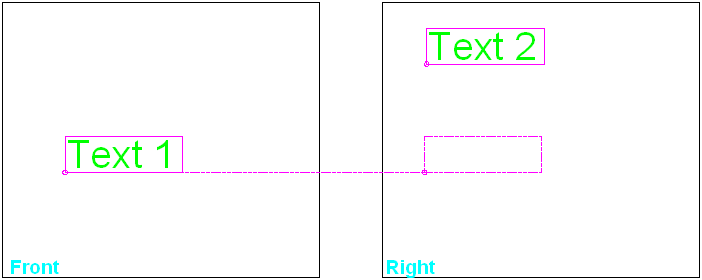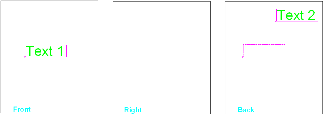 When Text 1 and Text 2 are on opposite faces, then Text2 is aligned with the reference point of Text1.