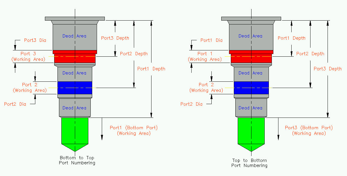 Cartridge valve cavities are divided into Working Areas (port area) and Dead Areas. All parts of a cavity other than the port area are considered the Dead Area.