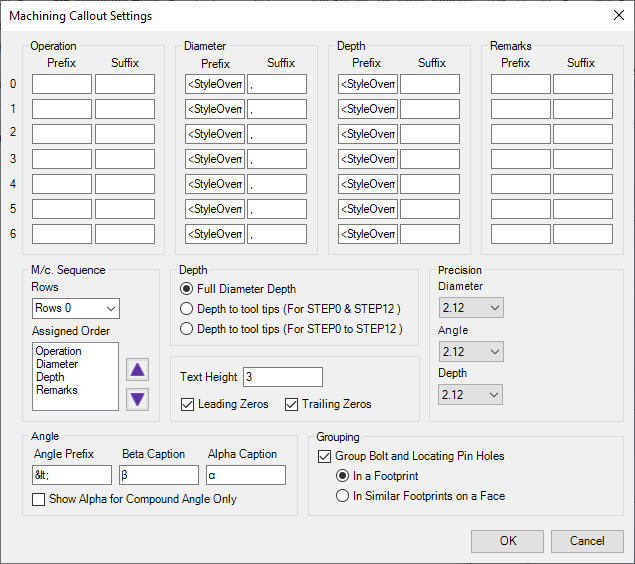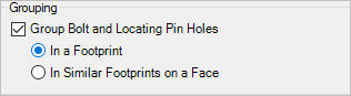 9. Select Group Bolt and Locating Pin Holes to either group the Machining Callouts automatically for a Footprint or similar Footprints on a Face.