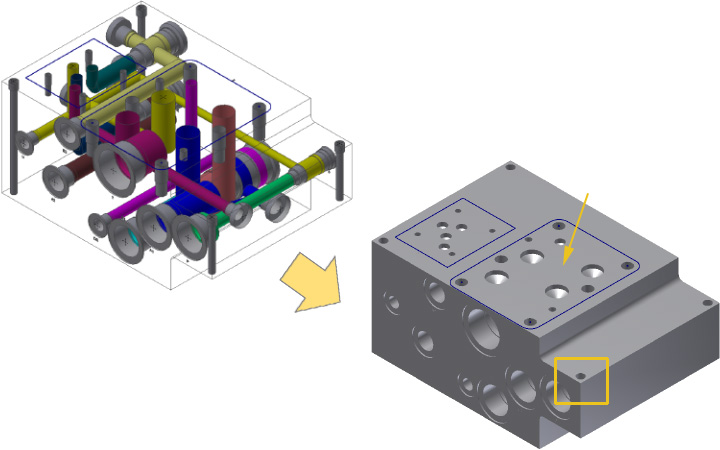 Shrink Wrap Non-Rectangular Manifolds to remove internal connectivity information The through bolt holes are kept unchanged