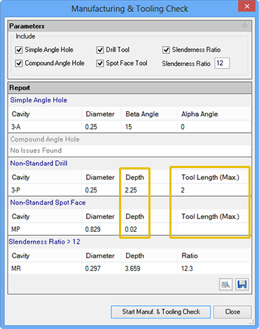 | Manufacturing and Tooling Check – Actual and Standard Values Displayed | ||