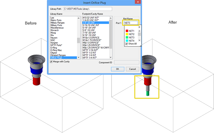 | Position Cavities or Footprints by Dragging when Inserting or Connecting Cavities |