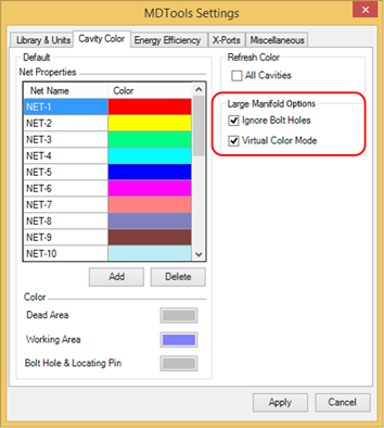 MDTools Settings > Cavity Color > Large Manifold Mode
