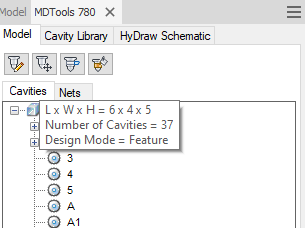 Number of Cavities and the current Design Mode listed in Part File