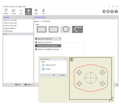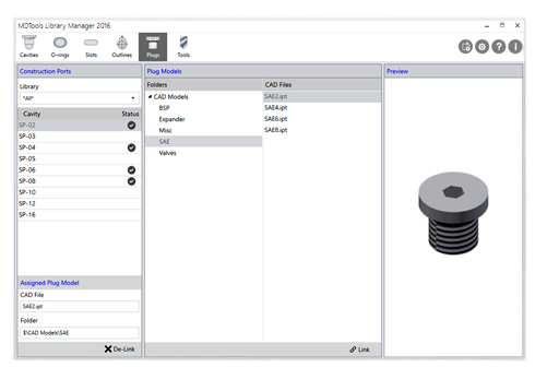 | Manage cavities, O-rings, slots, outlines, plugs, tools and access various features |